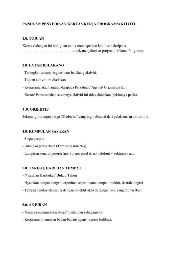 Panduan Penyediaan Kertas Kerja Aktiviti Pdf